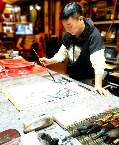 現在已經有畫廊給他的畫賣到了一千元一平尺,他卻說國畫創(chuàng)作只是對內心的慰藉。