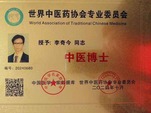 3.在國家中醫(yī)藥管理局下屬的世界中醫(yī)協(xié)會,2024年10月考為中醫(yī)博士,被評為世界中醫(yī)協(xié)會常務副會長,頒發(fā)了資格證書和胸章,進行了公開報道。