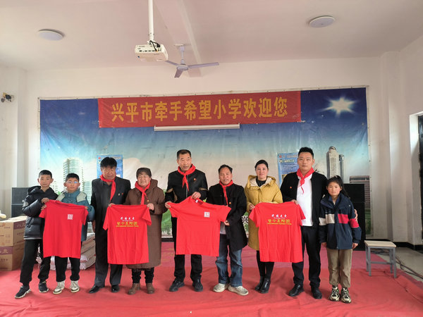 簽約儀式上,高秀山、許衙評、藍(lán)乙人、劉艷和翟琳娜進(jìn)行了座談交流;六年級學(xué)生何思雨、任夢晨還送來了求助信,高秀山臺長給她們介紹了加拿大的風(fēng)土人情及國外小朋友的生活情況?;顒悠陂g,高秀山為興平牽手希望小學(xué)贈送了4件寫有“愛是橋梁”的T恤衫。