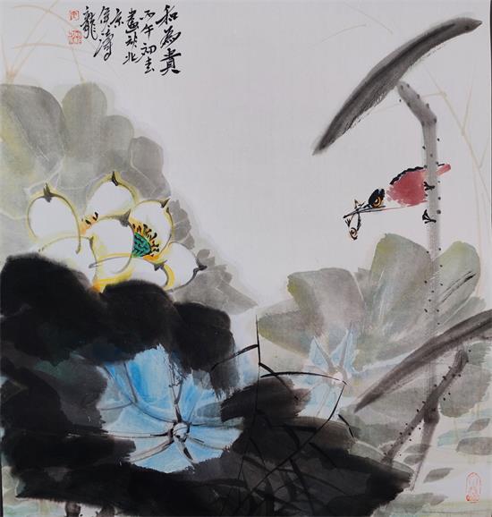 2017年作品《十八漢田》入選熱烈慶祝十九大勝利召開(kāi)第九屆全國(guó)著名花鳥畫展。